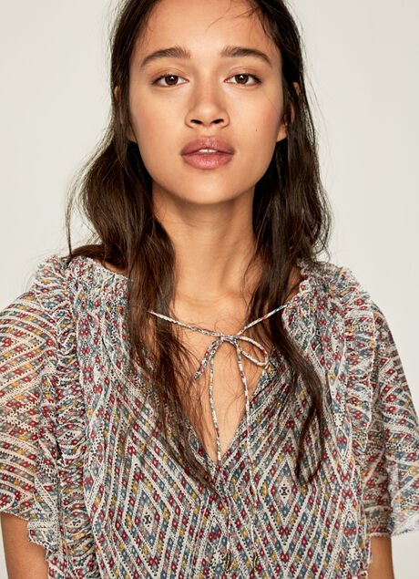 – Blusa manga corta tejido fluido