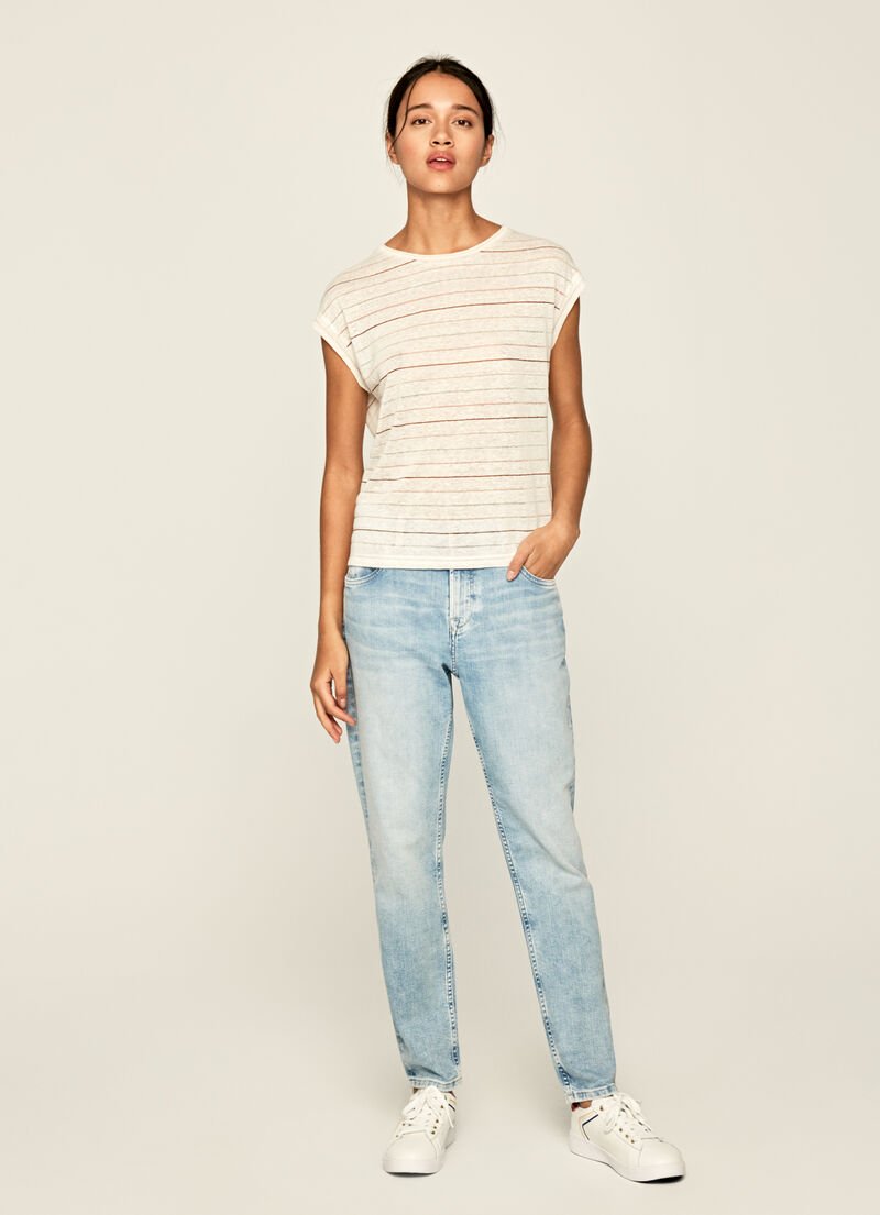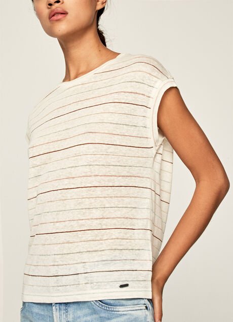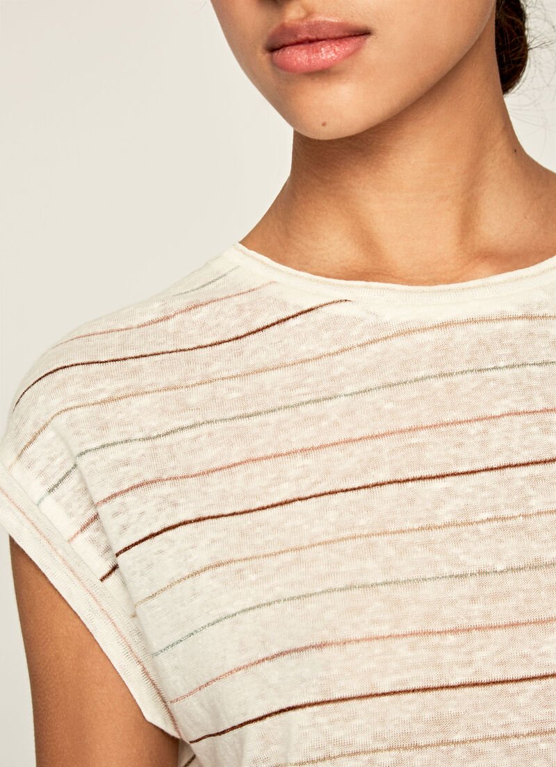 Camiseta manga corta tejido suave a rayas, detalles en lurex.