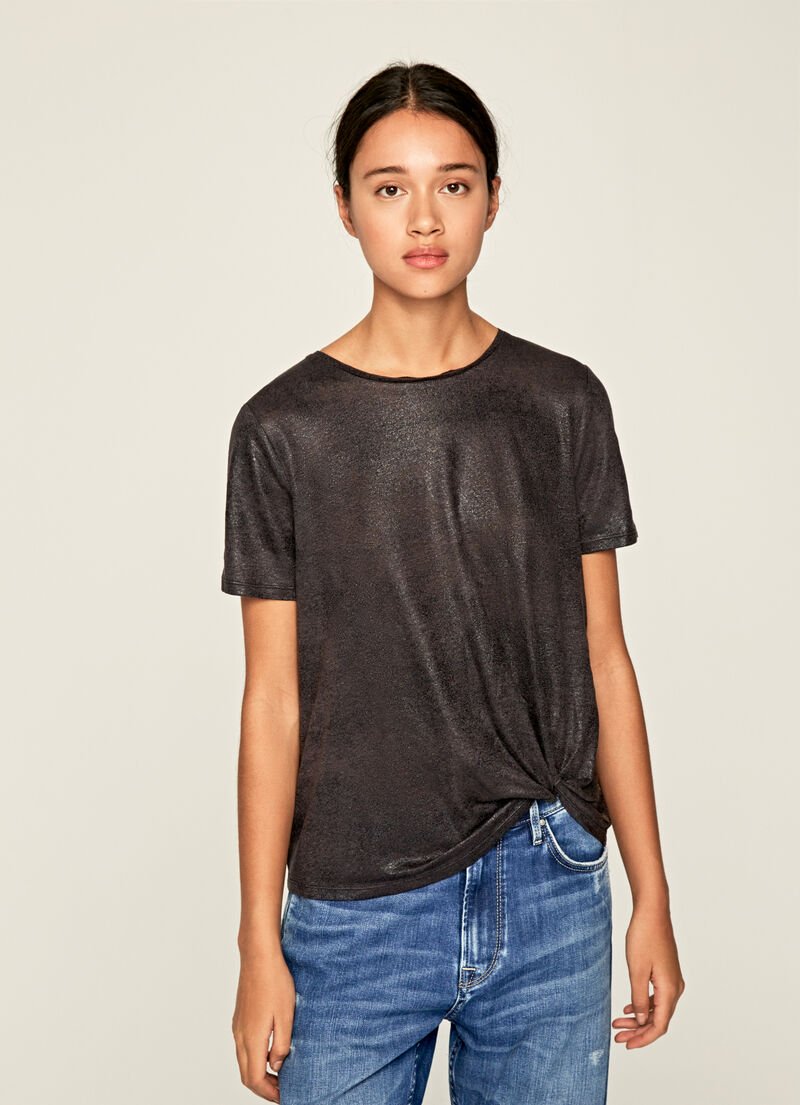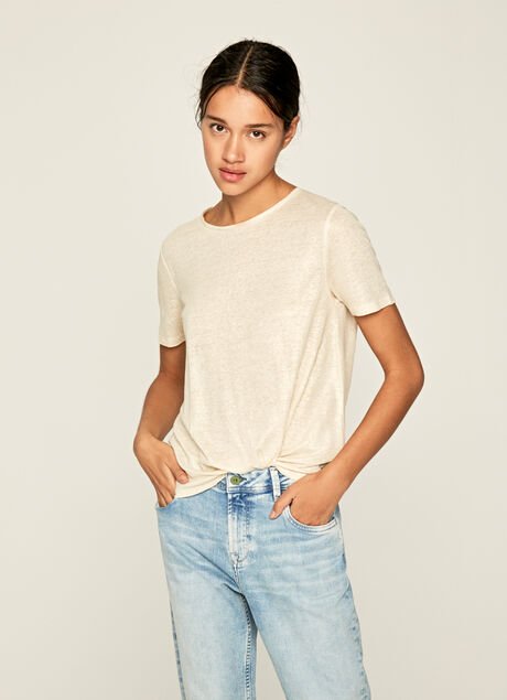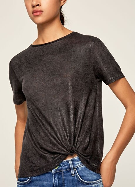 Camiseta manga corta tejido fluido y suave con nudo en el bajo.